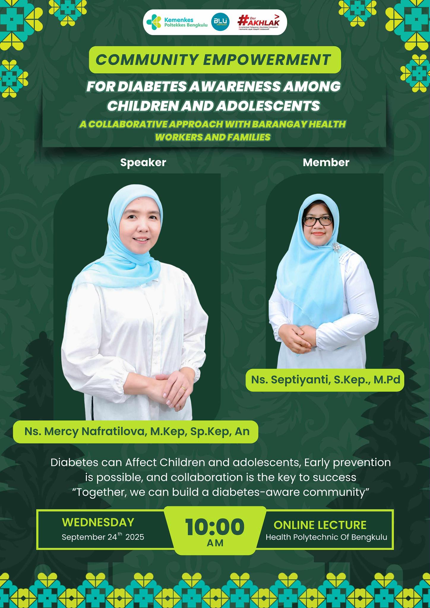 The virtual seminar, titled “Community-Based Intervention for Diabetes Awareness in School Children,” took place on Monday, September 29, 2025, at 10:00 AM, featuring specialized instruction from prominent nursing professionals of the Health Polytechnic of Bengkulu, Indonesia. This international collaborative effort saw Ns. Mercy Nafratilova, M.Kep, Sp.Kep, An, serve as the principal speaker, offering in-depth insights into early prevention strategies and clinical management relevant to pediatric cases. She was ably supported by Ns. Septiyanti, S.Kep., M.Pd, who participated as a dedicated member of the expert team, reinforcing the quality and depth of the information shared. The program was specifically designed to be a collaborative approach, engaging directly with health workers and families from the communities of Brgy. Nilombot and Brgy. Banzal, both in Sta. Barbara, Pangasinan. This focused outreach underscores the philosophy that while diabetes can affect young people, early prevention is possible and hinges on sustained, community-wide collaboration. The core message resonated throughout the session: “Together, we can build a diabetes-aware community.”