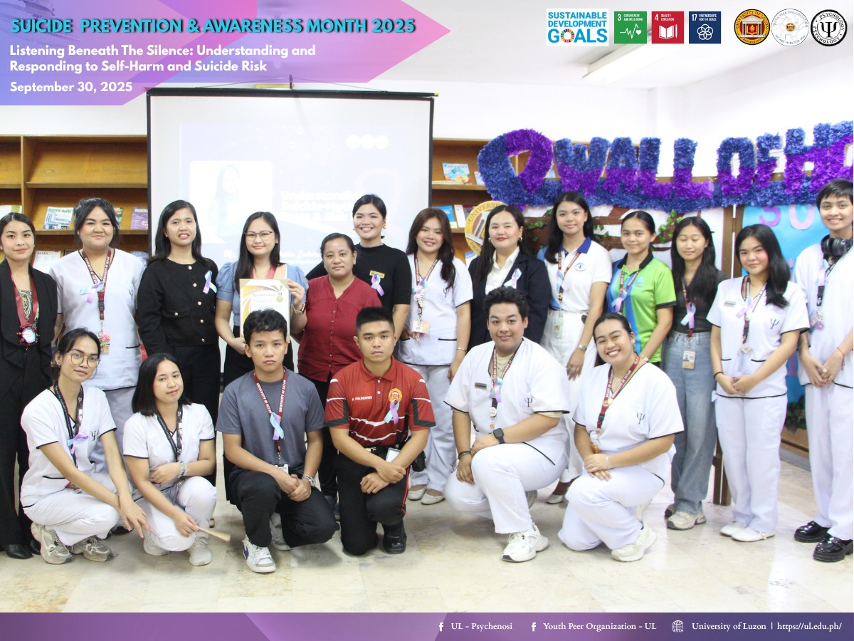 Posted on 30th of Sep 2025 by UL AdministratorThe University of Luzon (UL) reaffirmed its strong commitment to the mental health and well-being of its academic community by hosting the annual Suicide Prevention & Awareness Month 2025 program in celebration of the global observance. Held on September 30, 2025, from 7:30 AM to 12:00 NN at the UL Library’s Third Floor (Periodical Section), the half-day event centered on the critical and sensitive theme, “Listening Beneath The Silence: Understanding and Responding to Self-Harm and Suicide Risk.” This timely gathering provided a vital platform for students, faculty, and staff to engage in essential discourse surrounding mental wellness, self-care, and community support systems, compelled to challenge misconceptions, break stigma, and foster meaningful conversations grounded in openness, compassion, and mutual support.